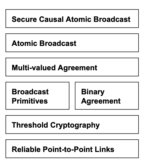 The consensus problem involves an asynchronous system of processes, some of which may be unreliable. The problem is for the reliable processes to agree on a binary value. Every protocol for this problem has the possibility of nontermination [22]. While the vast majority of PBFT protocols steer clear of this impossibility result by making timing assumptions, randomness (and, in particular, cryptography) provides an alternative route. Asynchronous BFT protocols have been used for a variety of tasks such as binary agreement (ABA), reliable broadcast (RBC) and more [[6]].