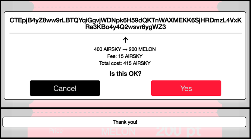 enough MELON and needs to convert some AIRSKY into MELON, making use of an exchange operated by Charlie. The coffee