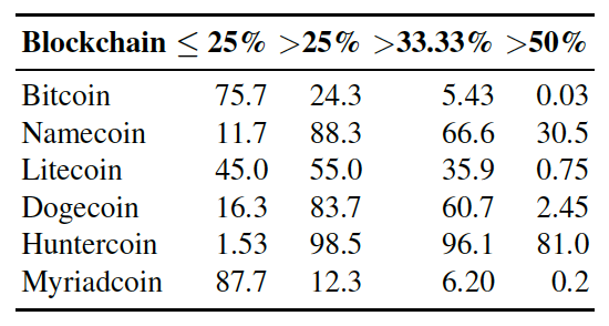 - In a conservative analysis, successful attacks on PoW cryptocurrencies are more likely when dishonest entities control more than 25% of the total mining power [24].