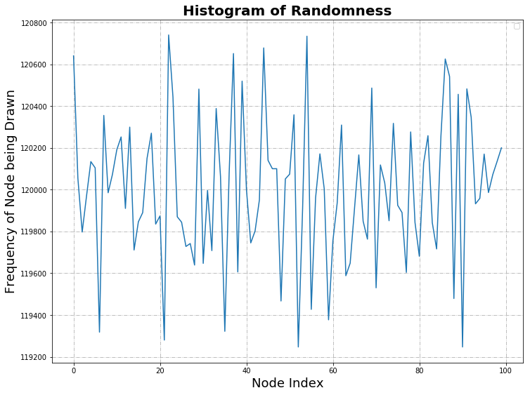 The histogram of randomness highlights the distribution of good and bad nodes selected in each experiment, highlighting the random nature of the experiment.